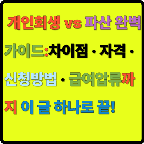 ⚖️ 개인회생 vs 파산 완벽 가이드:차이점 · 자격 · 신청방법 · 급여압류까지 이 글 하나로 끝!