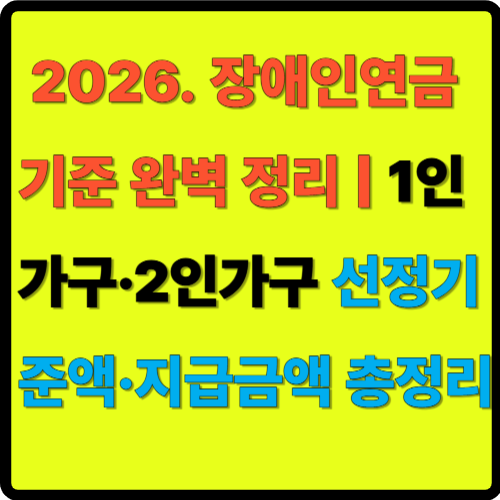 ♿ 2026 장애인연금 기준 완벽 정리 | 1인가구·2인가구 선정기준액·지급금액 총정리