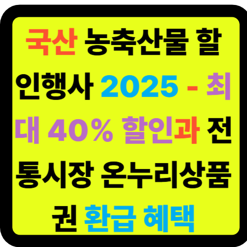 🎉 2025년 7월 17일부터 8월 6일까지 3주간 전국 1만 2천여 개 온·오프라인 유통업체에서 국산 농축산물을 최대 40% 할인받을 수 있는 대규모 할인행사가 진행됩니다. 여름 휴가철 증가하는 식비 부담을 덜어주기 위한 정부 지원 사업으로, 1주일에 1인당 2만 원 한도로 혜택을 받을 수 있습니다. 또한 8월 4일부터 9일까지 전국 130개 전통시장에서는 30% 할인과 함께 최대 2만 원까지 온누리상품권으로 환급받는 특별 이벤트도 동시 진행됩니다.📋 목차1. 국산 농축산물 할인행사 개요2. 온·오프라인 유통업체 할인 혜택3. 전통시장 온누리상품권 환급 이벤트4. 할인 혜택 이용 방법5. 문의처 및 관련 링크🌟 국산 농축산물 할인행사 개요📅 행사 기간과 배경2025년 여름 휴가철을 맞아 가계의 ..
